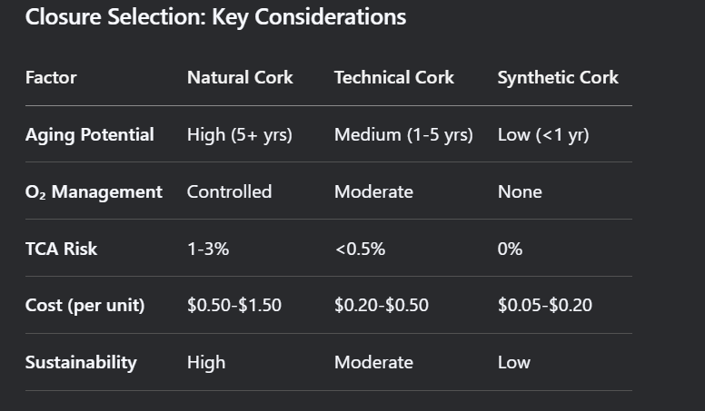 High-Volume Wines: Synthetic or screw cap for consistency.